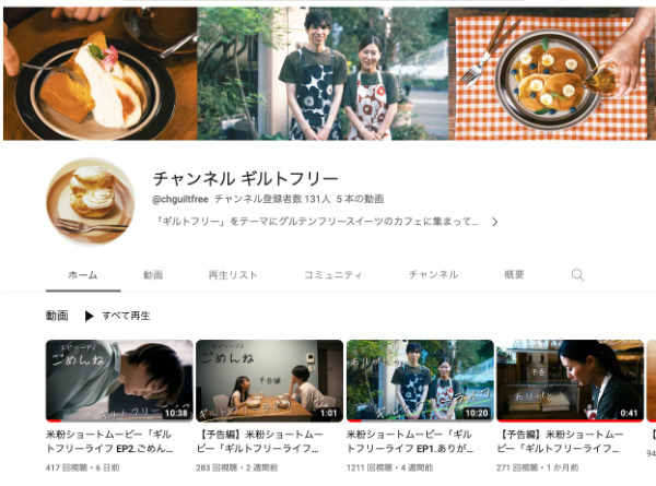 チャンネル ギルトフリー様の米粉スイーツのレシピ制作・撮影協力をいたしました。