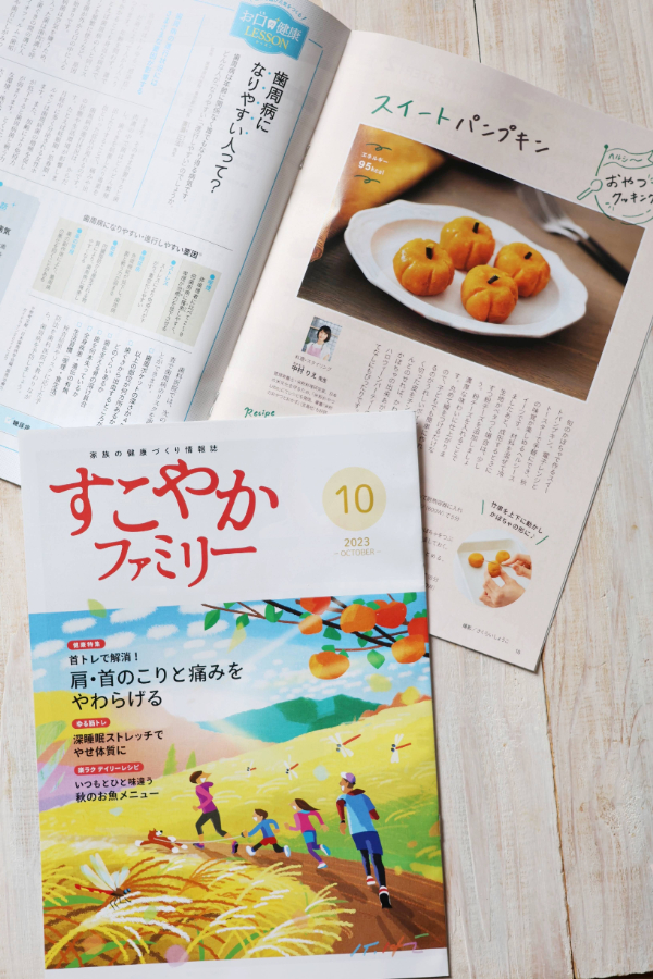 健保組合冊子すこやかファミリーの2023年度のヘルシースイーツコーナーを担当しています。